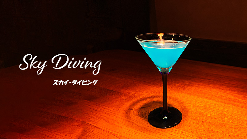 青いカクテルには、甘さを感じるものが多いですが【スカイ・ダイビング】は、甘さを控えた酸味が主体になっていますので、爽やかに飲んでいただけます。